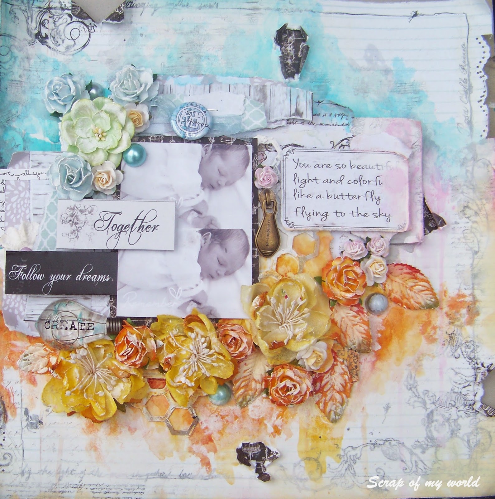 My name is Ksu (Kseniya), I live in Kemerovo (Russia) with my family: lovely hubby and cutest daughter. I love scrapbooking in my life and I’m getting inspired by all things around me. I love freestyle and mixed media. I’m so excited to be OUAS Guest Designer, it’s an honor for me! Thank you for the interesting theme of the challenge. I created the layout about my inspiration - my wings of creativity! My journaling on the LO says: "Just spread your wings and be inspired!"